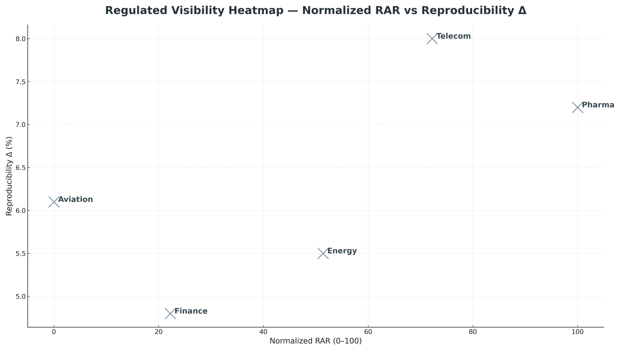 Sectors with formal data-integrity regimes (Finance, Energy) maintained tighter reproducibility; sectors governed by narrative compliance (Pharma, Aviation, Telecom) remain exposed.